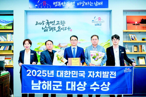 남해군이 '2025 대한민국 자치발전 대상' 기초자치단체 부문에 선정되는 영예를 안았다.