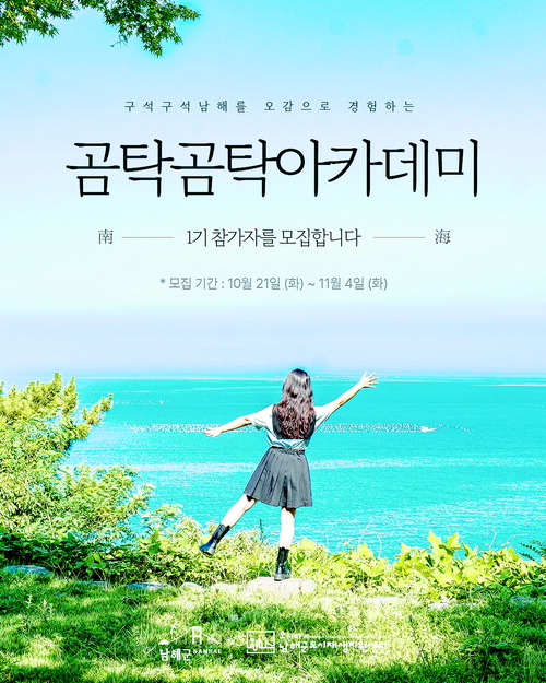 남해군은 보물섬 남해의 다채로운 인사이트를 전하는 '2025 남해군 보물섬 곰탁곰탁 아카데미' 1기 수강생을 오는 11월 4일까지 모집한다고 밝혔다.