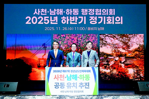 남해군·사천시·하동군이 2028년 제67회 경상남도민체육대회를 공동개최하기로 합의했다.