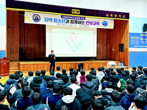 남해군은 지난 15일 자매결연부대인 해군 남해함(함장 함상연)에서 남해중학교를 방문해 학생들을 대상으로 모범학생 표창 및 안보교육을 실시했다고 밝혔다.