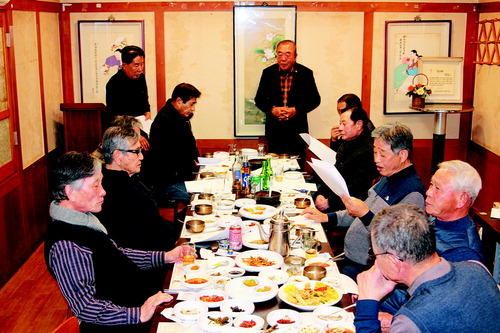이 신임회장은 "선배님들이 일궈놓은 향원회의 발전을 위해 열심히 배우면서 활동하겠다. 다사다난했던 을사년 마무리 잘하시고, 다가오는 병오년에는 붉은 말의 힘찬 기운을 받아 열심히 우리 모두 함께 달려가자"는 취임사와 함께 김진평 이임회장, 조준기 사무국장, 이장옥 감사에게 소정의 선물을 전달하고 그 동안의 노고를 위로했다.
