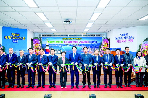 이날 준공식에는 장충남 군수, 정영란 남해군의회 의장과 군의원, 류경완 도의원, 경남도 에너지산업과장, 한국LPG사업관리원장, 한국가스안전공사 경남서부지사장, 기관단체장, 지역 주민 등 100여 명이 참석한 가운데 사업 완료를 함께 축하했다. 이번 사업은 총사업비 43억 1,700만원(국비 21억 5900만원, 도비 2억 1600만원, 군비 15억 1100만원, 주민 자부담 4억 3100만원)으로, 2.45t 용량의 LPG소형저장탱크 2기, 2t 규모의 LPG소형저장탱크 2기와 4.78㎞의 배관망이 설치됐다. 특히 세대별 금속배관으로 전면교체하고 가스누출 탐지기와 안전장치를 설치하는 등 가스시설 현대화사업으로 사고예방과 안정성을 동시에 확보했다.