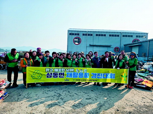 삼동면 새마을남녀지도자협의회(협의회장 한수찬, 부녀회장 김홍순)는 지난 16일 금송리 적조방제창고 공터에서 재활용품 수집 경진대회를 실시하였다.